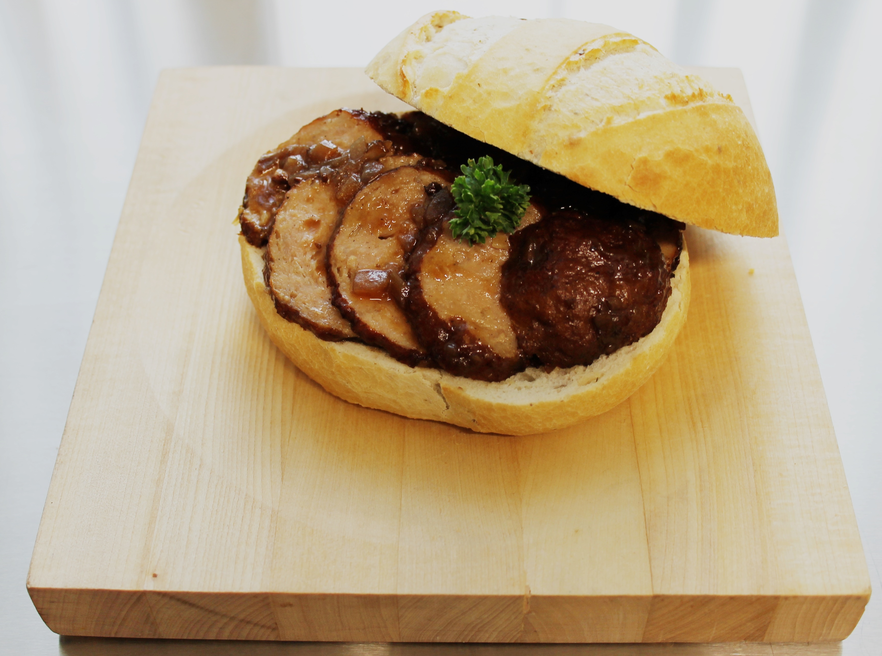 Italiaanse bol met een bal gehakt. In de jus met uitjes,